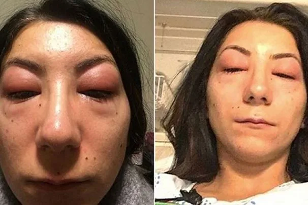 The morning after the 20-year-old booked in for the treatment, she woke to find her eyes completely swollen shut.