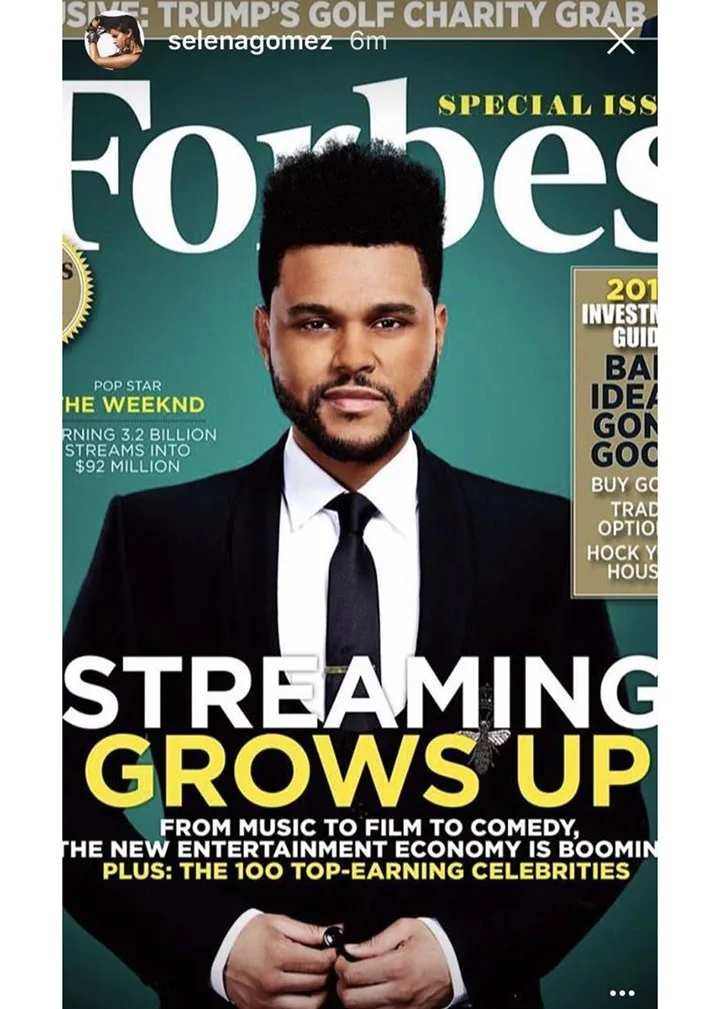 For example, when The Weeknd made the cover of Forbes for his place on the 100 Top Earning Celebrities list, Selena made sure to share the news with her fans on Instagram.